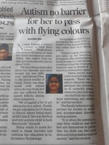 Nehal Tiwari, a science student of Gopi Birla School, Walkeshwar, has more to be proud of than her board examination score. Nehal, who suffers from Autism Spectrum Disorder, has secured 76.4%.
